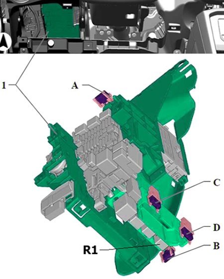 Interior Rearview Mirror, Rotary Light Switch, Reversing Lamp Switch, Air Quality Sensor, Refrigerant Pressure Sensor, Relay Connectors |